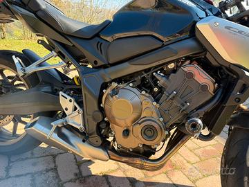 Honda CB 650 R Benzina – Manuale. Una moto versatile con soli 31.000 km, senza incidenti e in perfette condizioni di circolazione. Ideale per chi cerca una naked bike affidabile con pratica dotazione di viaggio. Immatricolazione: 03/2019, Chilometraggio: 31.000 km Motore: Benzina, manuale, 650 cc, 70 kW (95 CV), 4 cilindri Condizioni: Senza incidenti, nessun danno, perfettamente circolante, nessun lavoro da fare Illuminazione: Fari LED Accessori: Bauletto, borse laterali, cupolino Extra ho anche tuta di pelle intera e stivali volendo Vendo per passaggio a moto enduro Prezzo 6000 trattabili