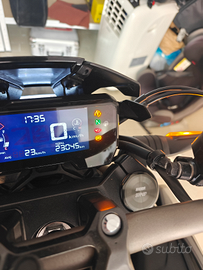 La moto è stata appena tagliandata in data 02/10/2025 con olio Bardahl , filtro aria della sprint filter (valore 100 euro) e ovviamente filtro olio, pastiglie anteriori bianche e posteriori rosse della Brembo e pulizia catena.