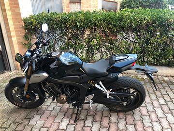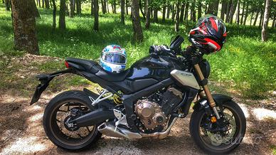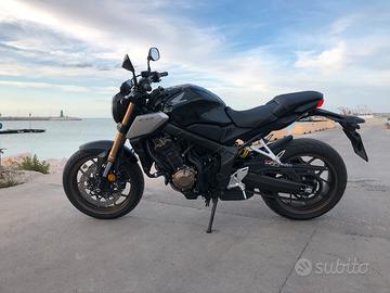 Vendo per passaggio ad altro segmento, Honda CB650R 10.700 km 2019, tagliandata e revisionata regolarmente per mantenimento garanzia. Porta taga originale disponibile. Attualmenteinstallato pprta targa barracuda. Disponibile cupolino fumè Givi. Presa usb installata al manibrio.