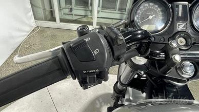 DEK:[10533604] BUONE CONDIZIONI COMPLETAMENTE ORIGINALI - TERMINALE DI SCARICO RACING - MARMITTA ORIGINALE - BAULETTO Motore: bicilindrico in linea frontemarcia da 499 cc, raffreddato a liquido, 4 valvole per cilindro, distribuzione DOHC (doppio albero a camme in testa), alimentazione a carburatori Keihin CV Ø 34 mm. Potenza: circa 57 CV (42 kW) a 9.000 giri/min. Coppia: circa 45 Nm a 8.000 giri/min. Trasmissione: cambio a 6 marce, trasmissione finale a catena.Telaio e ciclistica: telaio in acciaio tipo "diamond" derivato dalla CB500, forcella anteriore telescopica Ø 37 mm (escursione 120 mm, non regolabile), doppio ammortizzatore posteriore regolabile nel precarico (escursione 125 mm); cerchio anteriore da 17'' con pneumatico 110/70-17, cerchio posteriore da 17'' con pneumatico 130/80-17; impianto frenante con doppio disco anteriore Ø 296 mm (pinze a doppio pistoncino) e disco posteriore Ø 240 mm; sistema ABS opzionale (nelle versioni CBF500A).Altezza sella: circa 770 mm. Peso: circa 192 kg in ordine di marcia (versione con ABS: ~197 kg). Serbatoio: capacità circa 19 litri ([?] 5,0 US gal), di cui 3 litri di riserva.Stile: naked "standard" con linee semplici e funzionali, impostazione classica da moto-scuola e da commuting; carenatura assente o minimale, look sobrio ma solido. Carattere: progettata per offrire equilibrio, facilità e costi di gestione contenuti. Motore elastico, ciclistica prevedibile e posizione di guida naturale la rendono ideale per neofiti, uso urbano e turismo leggero. Affidabilità elevata e manutenzione semplice in pieno stile Honda. La motocicletta viene consegnata con TAGLIANDO e REVISIONE in ordine, GARANZIA DI 12 MESI con DICHIARAZIONE DI CONFORMITA' a norma di legge. VALUTIAMO IL RITIRO IN PERMUTA DI MOTO / SCOOTER / AUTO BONTEMPI MOTO -SHOW ROOM con 200 OCCASIONI SELEZIONATE e