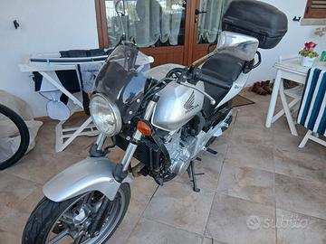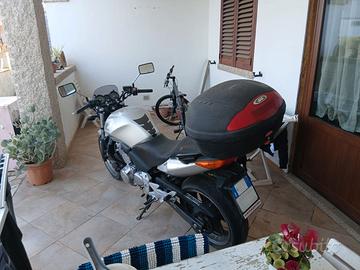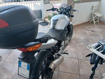 Vendo Honda CBF 500 del 2004 con 47000 km. Tenuta ancora bene come si vede dalle foto. Tagliandi sempre effettuati regolarmente. Da poco sostituita la trasmissione finale. Gomme al 70%. Completa di cupolino e bauletto come si vede in foto. Revisione valida fino luglio 2026. Disponibile per qualsiasi prova. Vendo a 2200 trattabili; passaggio a carico dell'acquirente.