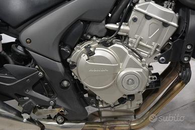 Motore: quattro cilindri in linea trasversale da 599 cc, raffreddato a liquido, 4 valvole per cilindro, distribuzione DOHC (doppio albero a camme in testa), alimentazione a iniezione elettronica PGM-FI con corpi farfallati da 34 mm. Potenza: circa 78 CV (57 kW) a 10.500 giri/min. Coppia: circa 59 Nm a 8.250 giri/min. Trasmissione: cambio a 6 marce, trasmissione finale a catena.Telaio e ciclistica: telaio in alluminio pressofuso tipo mono-backbone (derivato dalla CBF1000), forcella anteriore telescopica Ø 41 mm (escursione 120 mm, non regolabile), monoammortizzatore posteriore con leveraggio Pro-Link regolabile nel precarico (escursione 125 mm); cerchio anteriore da 17'' con pneumatico 120/70-ZR17, cerchio posteriore da 17'' con pneumatico 160/60-ZR17; impianto frenante con doppio disco anteriore Ø 296 mm (pinze a doppio pistoncino) e disco posteriore Ø 240 mm (pinza singolo pistoncino); sistema ABS di serie o opzionale a seconda della versione.Altezza sella: regolabile su tre livelli: circa 770 mm / 785 mm / 800 mm. Peso: circa 222 kg in ordine di marcia (versione con ABS). Serbatoio: capacità circa 20 litri ([?] 5,3 US gal).Stile: roadster o semicarenata (versione CBF600N nuda, CBF600S semicarenata con cupolino regolabile); design sobrio e funzionale, linee fluide e impostazione turistica ma moderna. Carattere: moto equilibrata e versatile, pensata per adattarsi a piloti di ogni livello. Offre comfort, affidabilità e prestazioni brillanti ma gestibili, con una ciclistica stabile e prevedibile. Ideale per uso quotidiano, turismo e guida rilassata, con il classico comportamento fluido e progressivo dei quattro cilindri Honda.La motocicletta viene consegnata con TAGLIANDO e REVISIONE in ordine, GARANZIA DI 12 MESI con DICHIARAZIONE DI CONFORMITA' a n