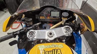 honda cbr 1000 con motore appena revisionato completamente settembre 2025 (fasce, guarnizioni, bronzine, ecc) e documentabile con fatture e foto. è ancora in rodaggio (50km fatti) monta: testa flussata robby moto centralina hrc piastre robby moto con regolazione inclinazione sterzo sospensioni bitubo con piedini ricavati dal pieno e forcelle lavorate al tin con kit scorrevolezza mono ttx gp (ha il doppio dei click del ttx normale) scarico completo titanio arrow trofeo dischi flottanti maggiorati 330 e spessore 6mm con interno ergal pinze R1 2017 pompa irc cornetti corti e cornetti medi (intercambiabili) gas rapido accossato canlaggio semplificato batteria bs sbk da 100grammi pedane regolabili parafanghi in carbonio carene tutte con ganci rapidi sella in spugna neoprene rialzata (pure comoda) cupolino doppia bolla da qui invece opzionale aggiuntivo: rapid bike race con accessori sonda lambda bosh con centralina autotune (si rimappa da sola in base al target afr) cambio elettronico youtune di controllo bluebike (connettere il telefono)