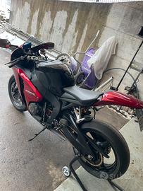 Vendo Honda cbr 1000 rr del 2008 km 12693 usata da una ragazza , al momento monta gomme slick perché voleva provare a girare in pista , ovviamente verranno rimesse le gomme stradali prossimamente , mappata con scarico akrapovic completo , monta frizione antisaltellamento , appena fatto cambi olio motore , freni e liquido radiatore , pedane arretrate , semi manubri allargati , ecc , assieme vengono dati moltissimi pezzi di ricambio , tra cui carene da pista , frizione originale , impianto elettrico semplificato da pista con cambio elettronico e centralina aggiuntiva (mai montato) secondo cupolino una tuta e un paio di stivali , scarico originale completo ecc