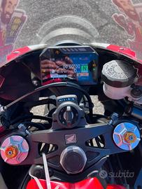 Vendo Honda CBR 1000 RR ANNO 2018 14500KM di cui 2000 fatti in pista come istruttore per corsi (da come si vedein foto,monta gli specchietti che sono obbligatori durante le attività) Allestimento Cerene pista Pedane Tamponi Scarico SC completo Mono Ohlins Cartucce Andreani NO ABS Immatricolato e con tutto materiale originale disponibile.