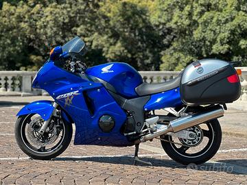 Prezzo ribassato. Pronta per le tue vacanze o viaggi futuri anche in coppia. Questo modello Honda XX 1100 a carburatori e' un must della produzione Honda molto ricercato e in ottime condizioni originali, 155CV, pneumatici 80%, appena tagliandato con cambio filtro e olio, catena seminuova, carrozzeria in ottime condizioni, secondo proprietario, con portaborse Wing GIVI e borse originali GIVI in perfette condizioni. Bollo pagato e prossima revisione settembre 2027. Solo 69mila KM originali. rimessaggio solo invernale ma sempre usata.