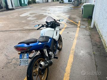 Tagliando appena fatto: olio, filtro olio, trasmissione (catena DID oro, corona e pignone), frizione(molle rinforzate malossi), Pastiglie freni EBC anteriore e Ferodo Posteriore organiche, monta pinze nissin, fornisco i paraoli athena per le forcelle nuovi da installare per manutenzione