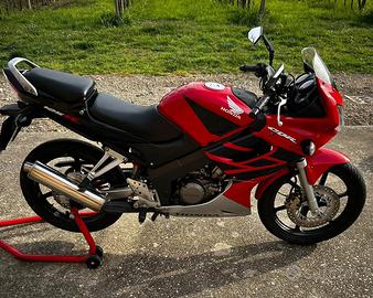 Vendo Honda CBR 125 R del 2006, l'ultima versione, motore con iniezione elettronica. La moto ha 43.000 km ed è stata sempre mantenuta con cura, è la moto perfetta per chi vuole imparare a guidare. Tagliandi eseguiti sempre regolarmente. Catena, corona e pignone in buono stato. Gomme praticamente nuove. La meccanica è solida e pronta all'uso. Esteticamente presenta qualche graffietto. Revisione valida fino al 09/2027. Contattami per foto extra o per vederla dal vivo