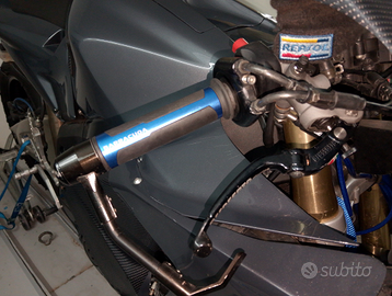 Vendo a malincuore splendida Honda cbr 600 anno 2005 pronta per le pista, pronta per chi vuole iniziare questa avventura, la moto monta cambio elettronico pompa freno accostato tubi in treccia accostato acceleratore rapido pedane arretrate cambio rovesciato gomme al 70% la moto e targata e quindi necessità di passaggio no perditempo no affaristi