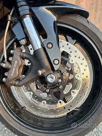Honda cbr 600 RR anno 2007. Sono state installate le protezioni per i carter e i para telaio. Sostituiti di recente i dischi freno anteriori e pastiglie nuovi, entrambi Brembo, sostituiti paraoli ed olio delle sospensioni anteriori. Verifica gioco valvole e sostituzione candele eseguito a 32000 km. Olio motore sostituito qualche giorno fa’. Pneumatici in buono stato con pochissima usura. Revisione eseguita nel 2025. Il mezzo è in ordine per la circolazione e non necessita di interventi.