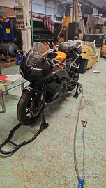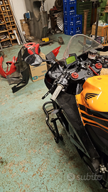 Bellissima honda cbr 600 rr del 2007, targata revisionata, ex pista con ancora alcuni pezzi montati come: frizione rinforzata antisaltellamento, cambio elettronico, batteria alleggerita al litio, pastiglie ceramiche, pedane arretrate, sospensioni mupo, scarico diretto completo in inox leovince, mappa, strumentazione da gara purtroppo priva di chilometraggio (fermato circa a 17mila nel 2020 e usata sporadicamente da allora)