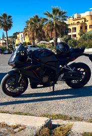 Honda CBR 650R 2019 - 95 CV | MIVV Omologato Vendo Honda CBR 650R anno 2019 (versione a potenza piena 95 CV) in eccellenti condizioni, sempre tenuta con la massima cura da vero appassionato. Accessori: Scarico MIVV GP Pro OMOLOGATO Cupolino nero sportivo Codone monoposto Pneumatici Pirelli Supercorsa al 70% Portatarga sportivo Stabilizzatore di cambio: (No componenti economiche; lavoro eseguito a regola d'arte al tornio da meccanico esperto per aumentare la precisione degli innesti. Da provare) Tutte le parti originali disponibili e incluse Manutenzione: Acquistata a dicembre 2024 presso concessionario Honda come usato garantito. Manutenzione sempre documentata con ricevute, date e chilometraggi. Tagliando completo effettuato l'11/01/2026. Trasmissione DID completa NUOVA installata il 05/02/2026. Info: Km: 31.054 (in lieve aumento, moto attualmente in uso) Luogo: Sicilia - Provincia di Palermo Moto pronta all'uso, nessun lavoro da fare. Note: No perditempo - solo interessati seri. Vendo esclusivamente per passaggio a cilindrata superiore. Ogni intervento è documentato, ogni cambio olio, pastiglie o minimo intervento effettuato è documentato.