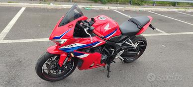 Si vende a malincuore come da titolo Honda Cbr650r anno 2024/2025 immatricolata 11/24 , primo modello con e-clutch. accessori: cupolino WRS, manopole DOMINO, portatarga EVOTECH, tappi per specchietti CBR. Si vede assieme specchietti originali e specchietti stealth, cupolino fumé e trasparente originale, portatarga originale. La moto è depotenziata SOLO a libretto, quindi guidabile A2.