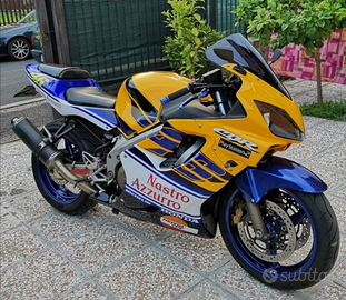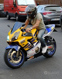 Vendo a malincuore Honda Cbr f sport anno 2002 produzione limitata, usata pochissimo, secondo proprietario, mai incidentata mai pista, solo piccole cadute e pochi km 58.000 bollata fino fine anno, revisionata e tagliandata anno scorso e poi rimessa in garage x infortunio al braccio. Vendo a malincuore x inutilizzo. Rifatta completamente tutta la carena originale, manopole leve frontalino, 2 copriruota uno giallo uno blu verniciato come cerchi, un'altro sottocodone, 3 marmitte tra cui originale, cavalletti e altri pezzi doppi di carena. Qualsiasi prova la moto e perfetta