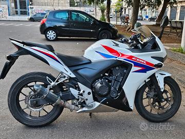 Vendo a malincuore la mia Honda CBR500R del 2013 per passaggio a cilindrata superiore. La moto è perfetta per chi cerca una sportiva facile e comoda, dai consumi ridottissimi e guidabile con patente A2. Nonostante i suoi 66.000 km, la moto è in ottimo stato, grazie ad una manutenzione puntuale e l'affidabilità di Honda. Mai utilizzata in pista, usata principalmente per tragitti casa-lavoro e qualche uscita domenicale. Caratteristiche principali: Anno: 2013 Chilometri: 66.000 km Potenza: 35 kW (48 CV) – Limite A2. Stato meccanico: Regolarmente tagliandata. Stato carrozzeria: buono, presente qualche difetto estetico. Gomme: ottimo stato. Prezzo: 3000€ Disponibile per qualsiasi prova o visione con il vostro meccanico di fiducia. La moto si trova a Catania.