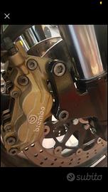 - al posteriore possibilità di montare Mono regolabile con leveraggio già preparato per il peso della moto oppure doppi Moni regolabili con attacco sul forcellone (simili agli Ohlins).