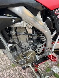 Vendo Honda cfr 450 2007 omologata motard causa inutilizzo. La moto ha 55.2 ore dal rifacimento completo del blocco, sono stati eseguiti i seguenti lavori: revione forcelle, sostituito catena corona e pignone, sostituito pistone, catena di distribuzione, albero completo, cuscinetti di banco e del cambio, dischi frizione e gommini valvole. Monta i seguenti pezzi: impianto frenante braking, forcelle e piastre marzocchi da pista, mono posteriore wp da pista, scarico completo yoshimura, accensione da Cross e diversi pezzi in ergal rossi. Moto pronta all uso appena tagliandata. Equipaggiata anche di impianto luci. Astenersi perditempo.