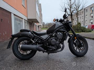 Honda Rebel con 16.000 km. Colore Matte Black. Tagliandata ogni anno in Honda e con garanzia ufficiale ancora valida. Equipaggiata con pacchetto luci e frecce led, barre para-motore, cover radiatore, cupolino fumè. Tutto originale Honda.