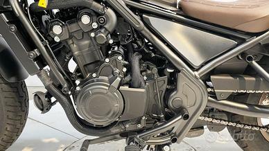 Motore: bicilindrico parallelo frontemarcia da 471 cc, raffreddato a liquido, 4 valvole per cilindro, distribuzione DOHC (doppio albero a camme in testa), alimentazione a iniezione elettronica PGM-FI. Potenza: circa 46 CV (34 kW) a 8.500 giri/min. Coppia: circa 43,3 Nm a 6.000 giri/min. Trasmissione: cambio a 6 marce, frizione assistita e antisaltellamento, trasmissione finale a catena.Telaio e ciclistica: telaio in acciaio tubolare con struttura a diamante e trave inferiore sdoppiato; forcella anteriore telescopica Ø 41 mm (escursione 121 mm), doppio ammortizzatore posteriore regolabile nel precarico (escursione 96 mm); cerchio anteriore da 16'' con pneumatico 130/90-16, cerchio posteriore da 16'' con pneumatico 150/80-16; impianto frenante con disco anteriore singolo Ø 296 mm (pinza a doppio pistoncino) e disco posteriore Ø 240 mm (pinza singolo pistoncino); ABS di serie.Altezza sella: circa 690 mm. Peso: circa 191 kg in ordine di marcia. Serbatoio: capacità circa 11,2 litri ([?] 3,0 US gal).Stile: cruiser compatta "bobber style" con linee basse e minimaliste, verniciature opache o scure, parafanghi corti e componenti neri; look moderno ma con richiami vintage, ideale per la personalizzazione. Carattere: moto dal temperamento rilassato ma vivace, con motore fluido e coppioso ai medi regimi. Pensata per neofiti e motociclisti esperti che vogliono una cruiser leggera, maneggevole e confortevole per l'uso urbano e le gite fuori porta. Comfort di guida, facilità di gestione e consumi contenuti la rendono una delle entry-level più apprezzate del segmento custom.- PAT A2