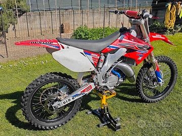 In vendita Honda CR 125 2002 ancora in rodaggio. La moto è stata completamente smontata e controllata in ogni dettaglio, cuscinetti puliti e ingrassati. Attualmente la moto monta un cilindro originale ricromato con pistone wossner (Prima della ricromatura il cilindro aveva 60 ore). Il traversino del cilindro è in perfette condizioni, mai stato saldato. Cilindro e pistone con 0 ore all'attivo, squish a 0,95mm. Accesa un paio di volte per controllare il corretto funzionamento. Monta i seguenti pezzi: - Scarico completo SRS (espansione + silenziatore) - Radiatori nuovi - Manubrio Renthal Twinwall - Leva frizione ASV - Disco anteriore Sparco - Disco posteriore Braking - Mozzi Kite - Qualche pezzo vario in ergal Kite e Geco - Filtro nuovo oleato Twinair Per qualsiasi necessità scrivetemi in privato, sono disponibile per qualsiasi delucidazione! MOTO NON TARGATA! Moto simile a: Suzuki RM, Yamaha YZ, Kawasaki KX, KTM SX, TM MX