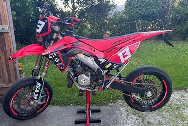 Come da titolo vendo Honda CR 125 Motard del 2007, ultimo modello motard targato, versione con valvola RC meccanica. Alla moto sono state apportate delle modifiche tra cui: - Kit plastiche restyling polisport (dispongo anche di quelle originali). - grafiche personalizzate - V-face (cedo anche faro ciclope originale). - scarico completo DEP Pipes (cedo anche quello originale). - Paraforcellone polisport. - pedane, leva frizione, più power parts in ergal rosso. - di serie la moto monta impianto anteriore magura con pinza 4 pistoncini radiale e pompa radiale (sono state sostituite le pastiglie anteriori poco fa). - Cilindro e pistone NUOVO con 7 ore all'attivo (dimostrabile). - Trasmissione nuova con 7 ore. - Biella, cuscinetti con 80 ore. - filtro aria nuovo. - Gomme bridgeston 70%. - Tamponi ruota, copri raggi e adesivi cerchi Honda racing. Il cambio dell'olio è stato fatto ogni 15 ore con olio motul. Usata sempre miscela con olio belray. Moto sempre tenuta al coperto e sempre tagliandata e curata dopo ogni uscita, da vero appassionato. Insieme alla moto cedo tutti componenti originali che sono stati sostituiti per renderla come è adesso. Contattare solo se realmente interessati. NO PERDITEMPO.