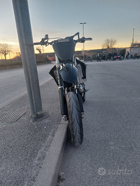 Insieme alla moto cedo parafango universale motard, v-face con il faro led, scarico originale,testa originale con la sua guarnizione nuova, or di scorta della resta bud,portatarga, contachilometri, 4 frecce led funzionanti, tappo serbatoio nero, parapignone originale, registri originali, guida catena nuovo, paramani e cavo per ricaricare la batteria.