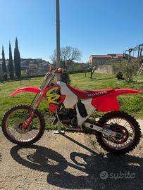 Salve come da titolo propongo questa fantastica Honda CR 125 dell anno 1994. Moto iconica per gli appassionati di motocross siccome era una delle 125 piu prestazionali data la valvola HPP (mostrata in foto) che monta su questo modello in particolare in quell’ annata. Moto con plastiche nuove, gomma posteriore nuova, catena corona e pignone nuovi, monopole nuove e paramani nuovi, pedaline e leva cambio in ergal. La moto non necessita di nulla e astenersi affaristi perche non la regalo. Non vado di fretta per venderla
