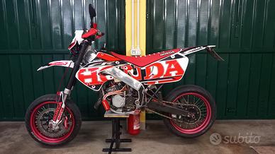 Vendo Honda CR 125 HPP omologato motard telaio 1999, omologato per 2 persone e guidabile con patente A1; revisionata in ogni sua parte, dalla A alla Z, documentabile Telaio senza crepe o saldature, piastra pedana con cavalletto rinforzati - Forcelle revisionate con ricambi e olio Kayaba con para-steli in carbonio - Disco anteriore da 320mm NG con sposta pinza HM e pinza Tarox unica (possiedo anche l'originale revisionata) con fissaggio del tubo in ergal rosso e pompa radiale corsa corta - Disco posteriore Brembo serie oro e pastiglie Nissin ancora da montare, pompa e pinza revisionate con guida tubo e para-pompa in ergal rosso - Impianto elettrico TOTALMENTE rifatto da zero con connettori rapidi che consentono il facile smontaggio della moto (luci full led, frecce sequenziali, presa USB 12v, Vface con elastici nuovi di scorta e faretto posteriore il tutto omologati con devio-luci LEONELLI) regolatore di tensione Ducati Energia, batteria, statore ducati energia sostituito di recente come TM Racing (con relativo carter HM nuovo) La moto dispone di blocchetto di accensione. - Piastre con slider per montare un manubrio da 28mm e paramani Acerbis integri - Frizione idraulica Magura con attuatore nuovo, olio nuovo Magura - La moto viene venduta con 3 kit di carene di cui 2 anno 99 sfondo bianco+ grafiche e un kit restyling bianco recente - Carter originali del 1999 "vergini" senza danni crepe o saldature (rarità) - Cilindro acquistato nuovo originale Honda con poche ore con pistone fascia, spinotto, fermi e prigionieri originali Honda selezione A - Albero originale Honda con biella Wossner, Testa in Ergal scomponibile ricavata CNC dal pieno, Cestello prox ergal, Pancia MESSICO Bud racing carbon, Usato sempre olio Syneco K112 A parte, svariati ricambi tra cui 1 motore quasi completo Prezzo trattabile dopo visione. No perditempo, GRAZIE