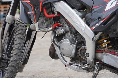 vendo bellissimo Honda cr 125 hpp del 2001 la moto all'attivo ha 150 ore di banco e 45 di pistone, sono stati eseguiti diversi lavori: dischi e pastiglie nuove, frizione nuova, cambio olio appena eseguito, pompa radiale anteriore nuova (non presente in foto) sono state montate le plastiche del crf 2024 con grafiche glitterate, inoltre la moto monta il cilindro hpp, impianto elettrico a batteria e gomme al 70% inoltre cedo altri due kit di plastiche e altre due gomme all'80%, la moto ha la tripla omologazione ed é omologata per due, inoltre si può fare assicurazione storica per pagare una sciocchezza di assicurazione.
