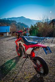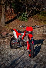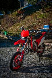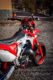 Vendo Honda cr125 2005 motard omologata per due persone. Il pistone ha si e no 10 ore da nuovo e nuova è anche la Pompa Dell acqua. Gomma anteriore continental sportattack 4 nuova, posteriore Michelin pilot power 2ct Al 70%. La moto monta svariati pezzi: riser manubrio in ergal Pedane in ergal Freno posteriore apico (ergal) Leva del cambio apico (ergal) Pompa freno braking Disco da 320mm Kit plastiche restyling 450 Cover serbatoio cmt carbonio Espansione procircuit Sella acerbis Terminale procircuit r304 shorty Forcelle e mono tarati motard. Insieme alla moto cedo anche altri pezzi ad esempio plastiche originali sella originale tabella piatta pignoni e corone varie testa bud racing e altro. Sicuramente dimenticherò qualcosa per il resto non ho nient altro da dire la moto è perfetta. Disponibile per prova, scrivere solo se realmente interessati prezzo leggermente trattabile