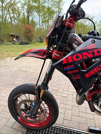 Honda cr 125 2004 con omologazione Motard enduro cross e biposto La moto al momento ha 13 ore Motore hpp 6 marce Pancia scalvini terminale scalvini full carbon forcelle anteriori taratura Motard con trattamento e Anodizzazioni steli mono posteriore tarato Motard impianto frenante beriger con disco pieno 310mm flottante pinza beringer 4 pistoncini con pompa braking radiale piastre xtrig con riser manubrio 28mm con manubrio piega bassa 28mm leva frizione in ergal rossa anti rottura protezione disco posteriore protezione pinza posteriore scorri catena protezione pignone tappo del olio freni tappo olio motore spinotto pedale freno passa cavo freno anteriore pedalino cambio e pedane registri tira ruota posteriore tutto in ergal rosso cerchi anodizzata bicolore rosso nero sfumati con raggi neri e nipples rossi accensione nuova tubi raffreddamento in silicone rosso Testa coperchi valvola leveraggio mono e pedalina accensione verniciati a polvere Kit plastiche restayling completo nere con grafica personalizzate V face con pellicola rossa sul fanale e luci a led porta targa led con faretto fume Ho un altro kit completo delle sue plastiche originale con le sue grafiche più scarico completo originale srs kit cerchi cross gommati e tutti i pezzi originali La moto viene consegnata tagliandata gommata nuova pronta al uso Prezzo trattabile