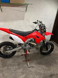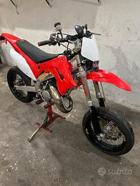 Vendo moto Honda cr 125 del 1998 con doppio kit motard è enduro, compresi nel prezzo anche molti pezzi di ricambio come scorta, la moto attualmente monta espansione procircuit platinum, silenziatore bud full carbon, pacco lamellare boyesen, motore completamente rifatto, cilindro nuovo con pistone in misura A, cuscinetti ruota-sterzo-forcellone nuovi, forcelle revisionate-gomme(motard e tassellate) nuove, la moto é stata totalmente rivisitata da cima a fondo, anche l'impianto elettrico completamente funzionante, moto pronta all'uso da fare solo revisione e assicurazione