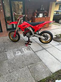 cerchi motard gommati con bridgestone s 22 ( gomme al 90%) , impianto elettrico energy sistem , insieme alla moto cedo cerchi enduro , scarico originale e statore per le luci ( al momento monta quello cross ) motore rifatto 60h fa ( lappatura cilindro , pistone , controllo biella e cuscinetti di banco , frizione nuova e molle rinforzate )