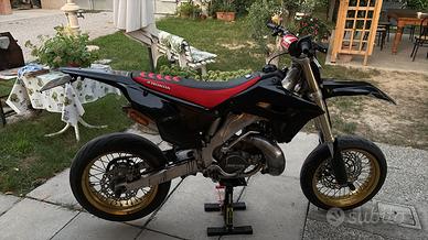 Vendo a malincuore bellissima honda cr 250 del 2003 , la moto e sempre stata tenuta in maniera maniacale , tripla omologazione ed omologata per due , monta kit plastiche restilyng , pancia dep e silenziatore fmf shorty , disco anteriore 320 motomaster , sposta pinza motomaster , rapporti 14-41 per il kit motard e 13-50 per il kit enduro .