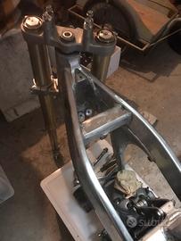 Vendo restauro completo telaio e motore tutto documentato lavori fatti, cuscinetti e boccole telaio,mono e forcelle rigenerati, trasmissione completa, motore imbiellaggio, pistone, cuscinetti tutti, frizione completa, motore ancora in rodaggio, gomme 80%, pronta per quasi prova, scarico Messico, silenziatore Scalvini..
