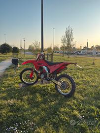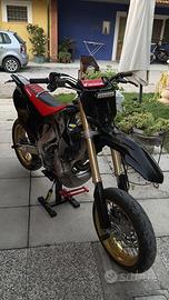 Vendo a malincuore bellissima honda cr 250 del 2003 , la moto e sempre stata tenuta in maniera maniacale , tripla omologazione ed omologata per due , monta kit plastiche restilyng , pancia dep e silenziatore fmf shorty , disco anteriore 320 motomaster , sposta pinza motomaster , rapporti 14-41 per il kit motard e 13-50 per il kit enduro .