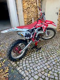 Vendo Honda CR 500 AF targata e tripla omologazione su telaio CRF 250 red moto modello 14-2017. Moto revisionata fino a febbraio 2027. A chi è interessato ma non interessa targata posso consegnare la targa e cancellarla dal PRA cosi da ottenere una moto da cross. La moto è stata completamente revisionata durante la conversione 2t. Tutti i componenti del motore sono stati sostituiti: Biella, pistone, cuscinetti, paraoli, guarnizioni, carburatore PWK originale, marmitta FMF completa, radiatori nuovi e tubi nuovi, inoltre elettronica completa nuova HTM racing con impianto luci ( faro led post e faretto led anteriore) dispongo anche della maschera V-face a parte. Parti ciclistica: Cuscinetti forcellone e leverismi nuovi. Gomme nuove. Plastiche e grafiche nuove ( più un kit di plastiche con grafiche red moto) Coperchio frizione boyesen. Piastre geco in ergal, pedane in ergal, corona leve e altra roba che non mi ricordo. Blocco motore pinze dei freni e carburatore verniciati a cerakote, trattamento in forno e resistente a benzina diluenti liquido freni o altro Tutto documentato con foto e fatture. Valuto permute con vespa 125 et3 primavera o altro Il tutto ha 20 ore di utilizzo dopo la conversione. Chi è interessato può contattarmi e venire a vederla e provarla quando vuole per capire che la moto è perfetta a livello di sospensioni freni e carburazione. Telefono o whatsapp 3468555241 Non contattatemi per video stupidi per dirmi che siete troppo lontani per venire a vederla, io ho preso un aereo e speso 2 gironi per andare in Sardegna a recuperare il motore. Le foto dell annuncio sono sufficienti, se uno è interessato viene la prova la guarda e fa i video.