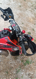 Vendo CR 85 portato a 105. Testa VM nuova appena montata, con kit guarnizioni nuovo, revisionato pompa acqua, kit guarnizioni carter cambio, pistone Vertex 3 ore, pinza freno Stage 6, lana di roccia del terminale sostituita, cilindro appena lucidato, candela nuova pompa freno posteriore a pollice con olio appena sostituito, olio cambio nuovo, gomme 80% montate a inizio stagione. Tutto dimostrabile con foto.