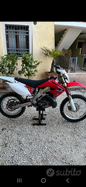 Bellissima honda cre 250 2T targata ( le ultime moto prodotte originali honda con motore 2 tempi ) motore rifatto da 50 h da officina autorizzata honda , doppie plastiche originali bianche e rosse e R Tech restyling 2022 , varie power parts , frizione idraulica magura , espansione Dep e silenziatore FMF , gomme nuove mai usate e sospensioni ( sia mono che forcella ) appena revisionate e mai usate , pararadiatori e molto altro , con mascherina e faro nuovi ma sprovvista di impianto elettrico ( bisogna installare un impianto semplificato con luci a led e piccola batteria spesa di girca 200 euro ) la vendo perché dopo aver fatto tutti questi lavori mio figlio ha preferito cambiare genere e prendere un motard prezzo leggermente trattabile solo dopo visione
