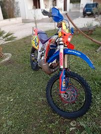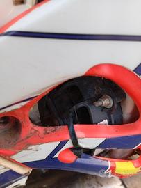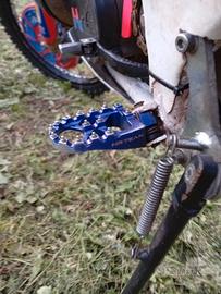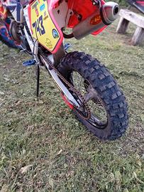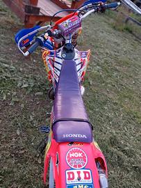 vendo Honda CRE 1995 preparata per enduro moderno.... mono e forcelle showa 48mm CRF 2016 cartuccia chiusa preparate da Zucco, elettro ventola con imp elettrico ausiliario ricaricabile e luci led pacco lamellare boyesen, pedane maggiorate, cestello frizione prox, para marmitta in carbonio 4/5 mm home made,manubrio 28 più reiser, fmf fatty catena cruna pinza posteriore revisionata completa tutto sostituito solo 5 ore di utilizzo...viene venduta con avantreno originale faro ufo originale e parafango baja chicche introvabili ecc una gomma nuova mitas king Stone posteriore tagliandata con freni nuovi entrambi...pronta all uso moto super affidabile mai avuto problemi...