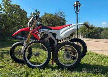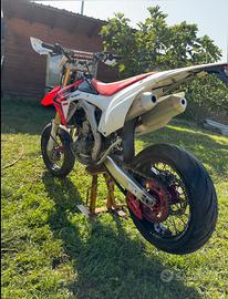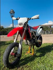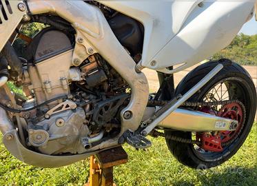 Vendo Honda CRE 250R Redmoto del 2017 tenuta maniacalmente. Il motore è stato rifatto 50 ore fa, le forcelle davanti completamente aperte e revisionate 2 ore fa, e la moto è sempre stata tagliandata regolarmente ogni 10 ore. Dispone di doppia omologazione (motard ed enduro), ma viene fornita SOLO con i cerchi da enduro (I cerchi da motard sono già stati venduti a parte dopo aver scattato le foto). La moto ha 3 mappe differenti, ed è stata utilizzata pochissimo dato che vivo all'estero. Moto sempre stata tenuta in garage e mai stata usata in pista o per gare. Inoltre monta il porta targa ONE per targa infila-sfila. Vendo per passaggio a stradale. Per informazioni e appuntamenti contattatemi al +39 3894203013.