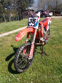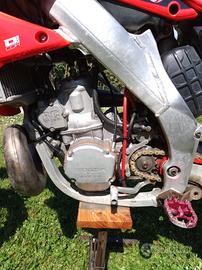 Buonasera, vendo honda cre/cr 250 del 2003, moto targata omologata motard, doppio cerchio dietro 18-19 e passeggero. Cilindro ricromato e primo pistone con 70/80 ore di moto. Usata come seconda moto per allenamento. Posseggo tutte le plastiche con faro anteriore, posteriore con targha. Gomme e trasmissione nuove. Se non rispondo mandatemi un messaggio anche whatsapp.