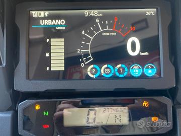 Tris Valigie in Alluminio, Cambio automatico DCT di serie,Schermo TFT a colori touch da 6.5" multifunzione, affiancato da un display LCD,Bluetooth, Apple CarPlay e Android Auto, Luci Full-LED, luci diurne DRL, e "cornering lights" progressive di serie,4 modalità preimpostate (Urban, Tour, Gravel, Off-Road) e 2 completamente personalizzabili (User),Piattaforma inerziale (IMU) a 6 assi che gestisce ABS cornering, controllo di trazione HSTC a 7 livelli e controllo dell'impennata a 3 livelli, Cruise Control, Parabrezza Regolabile e con ampia protezione aerodinamica, Manopole riscaldabili , Presa 12V e porta USB, Serbatoio 24,8 litri con elevata autonomia. Paracoppa maggiorato in alluminio, Paracarene Laterali e Frontali, Faretti Supplementari, Cerchi a raggi in alluminio, Etc.....