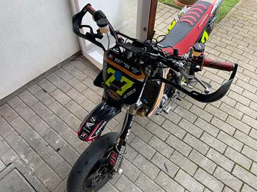 Vendo Honda Crf 150 kit athena 163cc + albero hotrod corsa lunga, banco rifatto con 37 ore, cilindro e pistone con 10 ore. Cambio rovesciato con kit elettronico starlane. Batteria per alimentare il cambio, frizione antisaltellamento. Freno posteriore ad indice sotto la leva della frizione. Cambio olio motore ogni 4 ore e quello frizione ogni 8 con motul 7100. Diversi ricambi compreso alza moto. Vendo per cessato utilizzo, ferma da 2 stagioni, nessun problema. Non scambio pagamento alla consegna visibile in provincia di Ravenna. Prezzo euro 4200