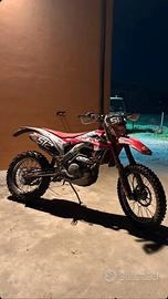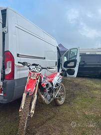 Honda crf 300r 2014 con 180h totali pistone 50h trasmissione pastiglie dischi 20h,gomma anteriore e posteriore 20h,candela sostituita 2h fa e forcelle revisionate sempre 2h fa,tagliandata ogni 7/8 ore (omolagata patente A2,motard,per 2 persone),ha qualche segno da usura e il parafango davanti leggermente rotto a causa di una caduta nel furgone mentre la caricavo, prezzo trattabile