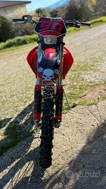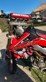 Vendesi Crf 250 4t del 2006 ,moto in ottime condizioni nessun lavoro da effettuare. Svariati lavori effettuati dimostrabili con fatture: -Pistone PROX -Valvole Titanium -Serie guarnizioni generali -tagliandi completi ogni 3 uscite -filtro dell’aria nuovo -candela iridium nuova -testa tornita -radiatori maggiorati in alluminio -para motore in alluminio -tubi radiatori 6 strati rossi -gioco valvole effettuato -carburazione -revisione forcelle con taratura -mono revisionato -cerchio posteriore 18 e non 19 -gomme semi nuove -doppio scarico -kit trasmissione nuovo ecc. Posso valutare permute di mio gradimento.