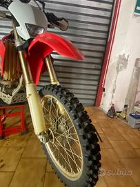 vendo honda crf 250 X, modello con avviamento elelttrico e a pedale, omologata 2 posti. Motore rifatto dal precedente propietario da quel momento 30 ore di utilizzo. Pnematici e mousse in ottime condizioni. Vendo 2600 euro trattabili +passaggio a carico dell'acquirente.