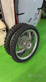 Il motore gira perfettamente, da calda parte subito, da fredda ci vuole qualche spedalata in più. Filtro e olio motore cambiati ogni 10 ore circa. Appena sostituito tutto il gruppo della trasmissione (catena, corona, pignone in ergal). Manubrio nuovo appena sostituito, leve antirottura sostituite da poco anche quelle. Da poco effettuato anche il cambio gomme con anche sostituzione kit cuscinetti posteriori. Insieme cedo kit plastiche di serie e kit plastiche rosse completi, leve di ricambio, cavalletto alzamoto e cavalletto a triangolo, cedo anche i prodotti che mi sono rimasti per la pulizia e manutenzione. La moto non è mai stata usata in pista per gare, solo per giri tranquilli nei boschi.