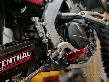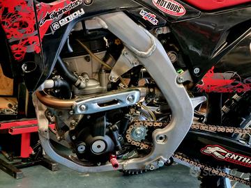 Honda CRF 250 R anno 2018 competizione cross con documento. Moto portata a telaio nella mia officina e completamente rifatta da capo. Tutti i lavori sono dimostrabili al 100%. Motore nuovo di biella, pistone alta compressione, cuscinetti, distribuzione, valvole e terza marcia del cambio. Testa lavorata con sedi in bronzo berillio e valvole maggiorate, condotti maggiorati e flussati tutto by martin racing. Tutta la minuteria, viti, perni motore e scorrimento di tutta la ciclistica nuovi. Pedane in ergal con supporti nuovi, perni, molle. Non ha un grammo di sporco. Graficata nuova. Forcelle e mono rifatti. Cerchi orginali ancora nuovi perchè era usata con altri cerchi. Gomme sono nuove, pastiglie e perni delle pinze nuovi. Cuscinetti del leveraggio e del telaio fatti. Tutti i liquidi. Pronta per la pista.