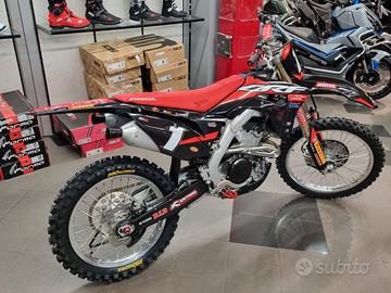 Concessionaria MAX MOTO di monselice specializzata nell offroad vende Honda CRF 250 R anno 2018 competizione ufficiale red moto con manuale e cavalletto originale. Moto con ZERO ore da quando è stata completamente rifatta. Moto portata a telaio e completamente rifatta da capo. Tutti i lavori sono dimostrabili al 100%. Telaio rifatto da zero. Motore nuovo di biella, pistone alta compressione, cuscinetti, distribuzione, pompa olio, valvole e terza marcia del cambio. Testa lavorata con sedi in bronzo berillio e valvole maggiorate, condotti maggiorati e flussati è un missile. Tutta la minuteria, viti, perni motore e scorrimento di tutta la ciclistica nuovi. Pedane in ergal con supporti nuovi, perni, molle. Non ha un grammo di sporco. Tutte le viti delle plastiche, delle piastre e delle ruote nuove. Graficata nuova. Forcelle e mono rifatti di olio e tenute. Cerchi orginali ancora nuovi perchè era usata con altri cerchi. Gomme sono nuove, pastiglie e dischi nuovi. Cuscinetti del leveraggio e del telaio fatti. Tutti i liquidi. Pronta per la pista. Paramotore nuovo della acebis nero. Plastiche e grafiche nuove. Moto ottima per chi vuole una moto prontissima fin da subito.